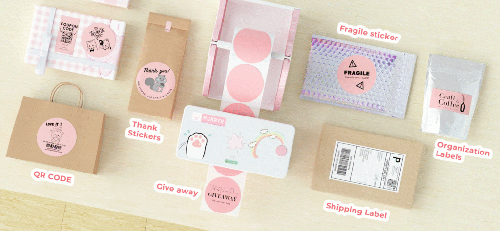 - For specific needs: Munbyn offers a wide variety of label sizes, shapes, and adhesives — from standard 4×6″ shipping labels to round, colored, or custom options.